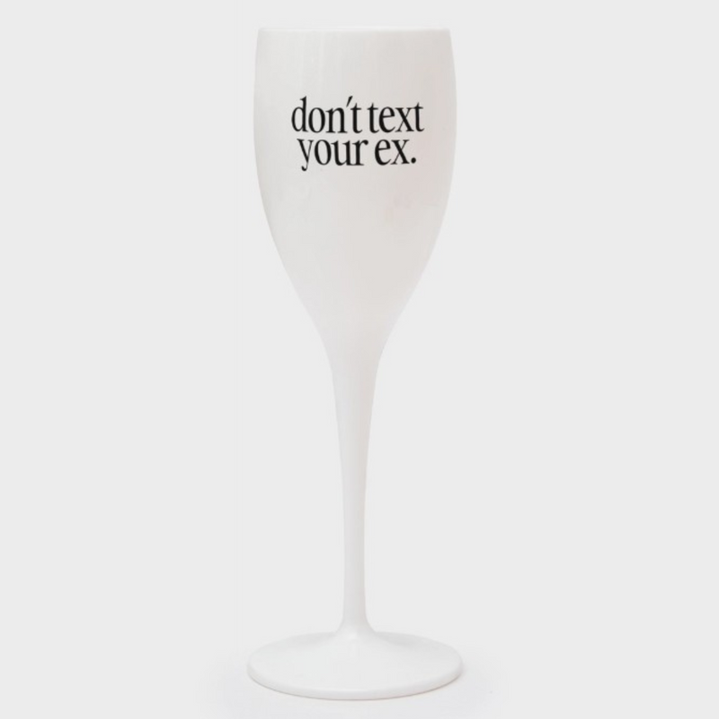 A great reminder post breakup - our "Don't Text Your Ex" champagne flute! Made of durable plastic, this champagne flute is the perfect way to celebrate leaving your ex behind. Get one for yourself or as a fun gift for a friend. Cheers to new beginnings!